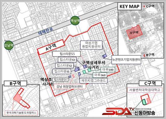 °³²±¸ º¥Ã³±â¾÷À°¼ºÃËÁøÁö±¸´Â â¾÷Áö¿ø½Ã¼³, ½ºÅ¸Æ®¾÷, ÅõÀÚ±â°üÀÌ ¹ÐÁýÇÑ º¥Ã³ Áß½ÉÁö´Ù. ¿ª»ïµ¿ 747-2¹øÁö ÀÏ¿ø(A±¸¿ª), µµ°îµ¿ 517-10 ÀÏ¿ø(B±¸¿ª), »ï¼ºµ¿ 37-18 ÀÏ¿ø(C±¸¿ª)À» Æ÷ÇÔÇØ 46¸¸¿©§³ ±Ô¸ð¿¡ À̸¥´Ù. °³²±¸°¡ ¼¼Á¦ ÇýÅà µî º¥Ã³±â¾÷ »ýŰè Ȱ¼ºÀ» ¸ñÀûÀ¸·Î Áß¼Òº¥Ã³±â¾÷ºÎ¿¡ ÁöÁ¤ ½ÅÃ»ÇØ ÇØ´ç Áö±¸°¡ Á¶¼ºµÆÀ¸¸ç, ±¸´Â â¾÷±â¾÷ÀÇ ¿ª·®À» °ÈÇϱâ À§ÇØ ÀÌ °°Àº ÀÚü Áö¿ø »ç¾÷À» ²ÙÁØÈ÷ ÃßÁøÇϰí ÀÖ´Ù.