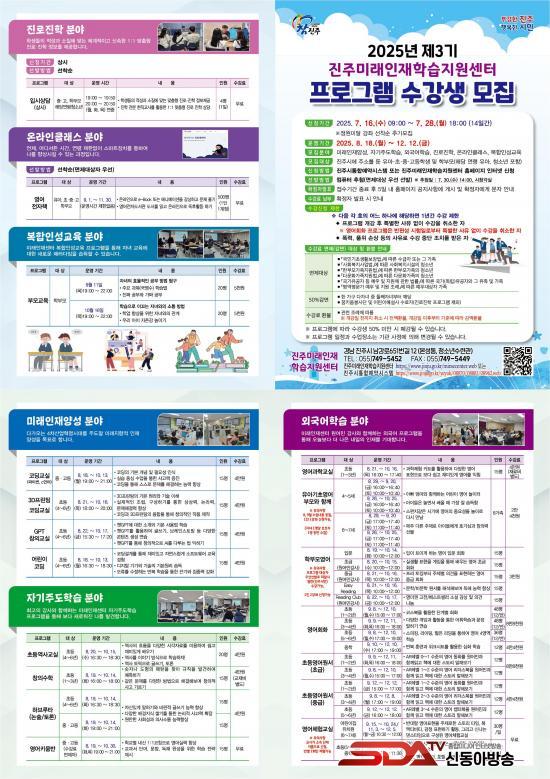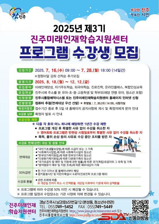 [½Åµ¿¾Æ¹æ¼Û °æ³²ÁøÁÖ=³²±Ã¿µ±â±âÀÚ] ÁøÁ̷ֹ¡ÀÎÀçÇнÀÁö¿ø¼¾ÅÍ´Â 7¿ù 16ÀϺÎÅÍ 28ÀϱîÁö ¡®2025³â Á¦3±â ÇÁ·Î±×·¥¡¯ ¼ö°­»ýÀ» ÁøÁÖ½ÃÅëÇÕ¿¹¾à½Ã½ºÅÛ°ú ¹Ì·¡ÀÎÀç¼¾ÅÍ ´©¸®ÁýÀ» ÅëÇØ ¸ðÁýÇÑ´Ù.