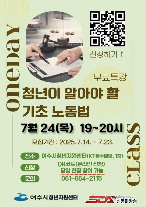 ¿©¼ö½Ã, û³â ¸ÂÃãÇü ¡®±âÃÊ ³ëµ¿¹ý 1ÀÏ ¹«·á Ư°­¡¯ ¿î¿µ