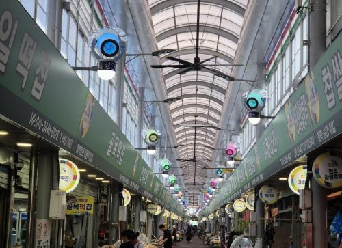 ÀÌ¿¡ ±º»ê½Ã´Â ¿©¸§Ã¶ ¹«´õÀ§·ÎºÎÅÍ ÄèÀûÇÑ ÀüÅë½ÃÀå ȯ°æÀ» Á¦°øÇϰí, »óÀΰú À̿밴ÀÇ ¿Â¿­Áúȯ ¿¹¹æÀ» À§ÇÏ¿© ¾ÆÄÉÀ̵å ÁöºØ 220m ±¸°£¿¡ Äð¸µÆ÷±× 44´ë¿Í HVLSÆÒ 8°³¸¦ ¼³Ä¡Çß´Ù.
