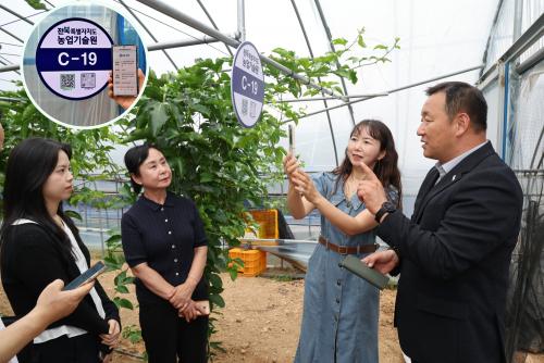 [½Åµ¿¾Æ¹æ¼Û=À̺´½Ä±âÀÚ] ÀüºÏƯº°ÀÚÄ¡µµ³ó¾÷±â¼ú¿ø(¿øÀå ÃÖÁØ¿­)ÀÌ ½ÃÇ迬±¸Æ÷Àå(±¸¿ª)¿¡ QRÄڵ带 µµÀÔÇØ ¿¬±¸Á¤º¸¸¦ Á¦°øÇÏ´Â µðÁöÅÐ ½Ã½ºÅÛÀ» Àü±¹ ³ó¾÷±â¼ú¿ø Áß Ã³À½À¸·Î ±¸ÃàÇß´Ù.