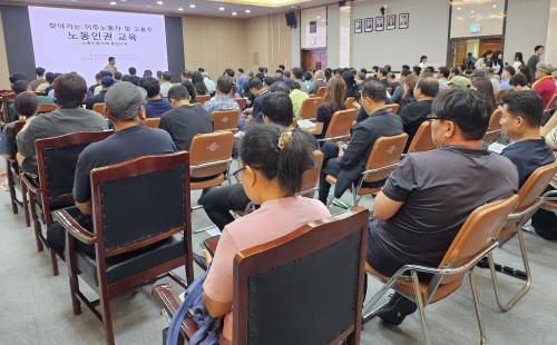 Áö³­ 12ÀÏ ³ªÁÖ½Ãû¿¡¼­ ¿­¸° ù ±³À°¿¡¼± ³ªÁÖ ¿Ü±¹ÀÎ °í¿ë»ç¾÷Àå °í¿ëÁÖ 200¿© ¸íÀÌ Âü¼®ÇØ ¡®2025 ¿Ü±¹ÀÎ °í¿ë»ç¾÷Àå ³ëµ¿À뱂 ±³À°¡¯À» À̼öÇϰí, ÇöÀåÀÇ °í¹Î°ú ¾Ö·Î»çÇ×À» °øÀ¯Çß´Ù.