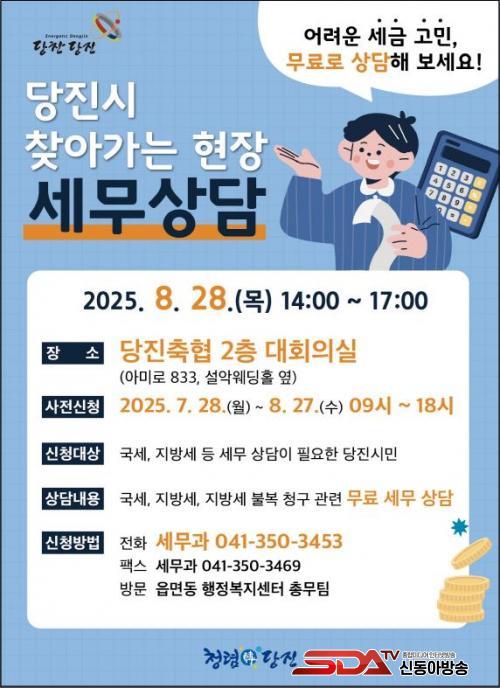 À̹ø »ó´ãÀº 8¿ù 28ÀÏ ¸ñ¿äÀÏ ¿ÀÈÄ 2½ÃºÎÅÍ 5½Ã±îÁö ´çÁøÃà»ê³óÇù(¾Æ¹Ì·Î 833, ¼³¾Ç¿þµùȦ ¿·) 2Ãþ ´ëȸÀǽǿ¡¼­ ÁøÇàµÇ¸ç, ´çÁø½Ã¹Î ´©±¸³ª ±¹¼¼ ¹× Áö¹æ¼¼ Àü¹Ý°ú Áö¹æ¼¼ ºÒº¹ û±¸ µî¿¡ ´ëÇØ Àü¹® ¼¼¹«»ç¿Í 1:1 ¹«·á ´ë¸é »ó´ãÀ» ¹ÞÀ» ¼ö ÀÖ´Ù.