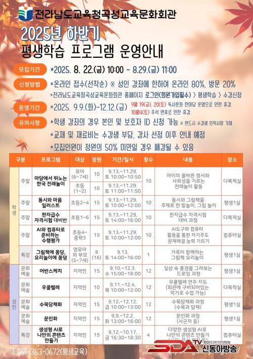 [½Åµ¿¾Æ¹æ¼Û Àü³²°î¼º=À̽ŵ¿±âÀÚ] Àü¶ó³²µµ±³À°Ã»°î¼º±³À°¹®È­È¸°üÀº 9¿ù 9ÀϺÎÅÍ 12¿ù 12ÀϱîÁö Çлý°ú Áö¿ª¹ÎÀ» ´ë»óÀ¸·Î¡®2025³â ÇÏ¹Ý±â Æò»ýÇнÀ ÇÁ·Î±×·¥¡¯À» ¿î¿µÇÑ´Ù.