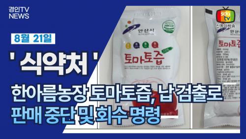 ½ÄǰÀǾàǰ¾ÈÀüó(óÀå ¿ÀÀ¯°æ)´Â °æ±âµµ ¾È»ê½Ã ¼ÒÀç ½ÄǰÁ¦Á¶¡¤°¡°ø¾÷ü ¡®ÇѾƸ§³óÀ塯ÀÌ »ý»ê¡¤À¯ÅëÇÑ ¡®Å丶ÅäÁó(½ÄǰÀ¯Çü: °ú¡¤Ã¤ÁÖ½º)¡¯¿¡¼­ ³³ÀÌ Çã¿ë ±âÁØÀ» Ãʰú °ËÃâÇÔ¿¡ µû¶ó ÇØ´ç Á¦Ç°ÀÇ ÆÇ¸Å Áß´Ü ¹× ȸ¼ö Á¶Ä¡¸¦ ÁøÇàÇÑ´Ù°í ¹àÇû´Ù.
