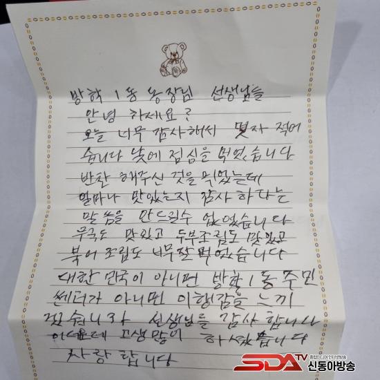 [½Åµ¿¾Æ¹æ¼Û µµºÀ±¸=À̽ŵ¿±âÀÚ] ¼­¿ï µµºÀ±¸ ¹æÇÐ1µ¿¿¡ Ȧ·Î °ÅÁÖÇϰí ÀÖ´Â ¾î¸£½Å A¾¾(83)°¡ ¹æÇÐ1µ¿Áֹμ¾ÅÍ¿¡ º¸³½ ¼Õ ÆíÁö ³»¿ëÀÌ Áö¿ª»çȸ¿¡ ÀÜÀÜÇÑ °¨µ¿À» ÁÖ°í ÀÖ´Ù.