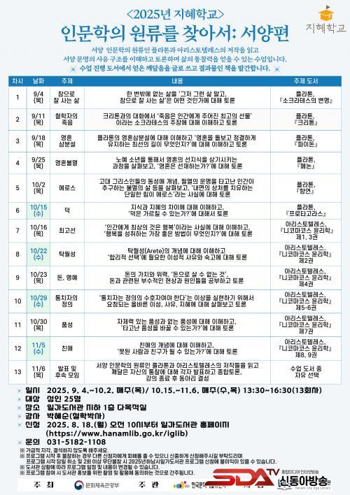 Çϳ²½ÃÀϰ¡µµ¼­°ü, ¡®2025³â ÁöÇýÇб³ Àι®ÇÐÀÇ ¿ø·ù¸¦ ã¾Æ¼­: ¼­¾çÆí¡¯ ¿î¿µ