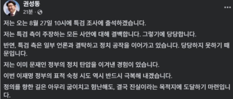 ÇÑÆí, ±Ç¼ºµ¿Àº Á¤Ä¡ ź¾ÐÀ̶ó°í ÁÖÀåÇÏ¸ç ³»ÀÏ(27ÀÏ) Ư°Ë¿¡ Ãâ¼®ÇÒ °ÍÀ̶ó°í ¹àÇûÀ¸³ª,