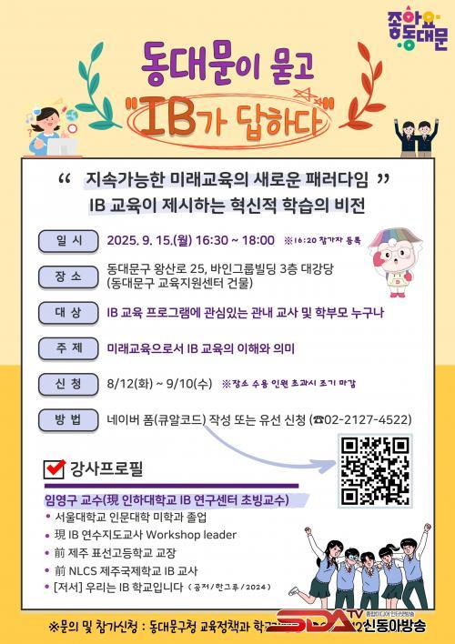 À̹ø µ¿´ë¹®±¸ Ư°Àº IB ±³À°¿¡ ´ëÇÑ ±³»ç¿Í ÇкθðÀÇ ÀÌÇØ¸¦ ³ôÀÌ°í µ¿´ë¹®±¸ IB ±³À°ÀÇ ¹æÇâÀ» °øÀ¯Çϱâ À§ÇØ ¸¶·ÃµÇ¾úÀ¸¸ç ¿À´Â 15ÀÏ ¿ÀÈÄ 4½Ã 30ºÐºÎÅÍ 6½Ã±îÁö µ¿´ë¹®±¸ ½Å¼³µ¿¿ª 3¹ø Ãⱸ ¹ÙÀα׷ìºôµù 3Ãþ ´ë°´ç(µ¿´ë¹®±¸ ±³À°Áö¿ø¼¾ÅÍ °Ç¹°)¿¡¼ ÁøÇàµÈ´Ù.