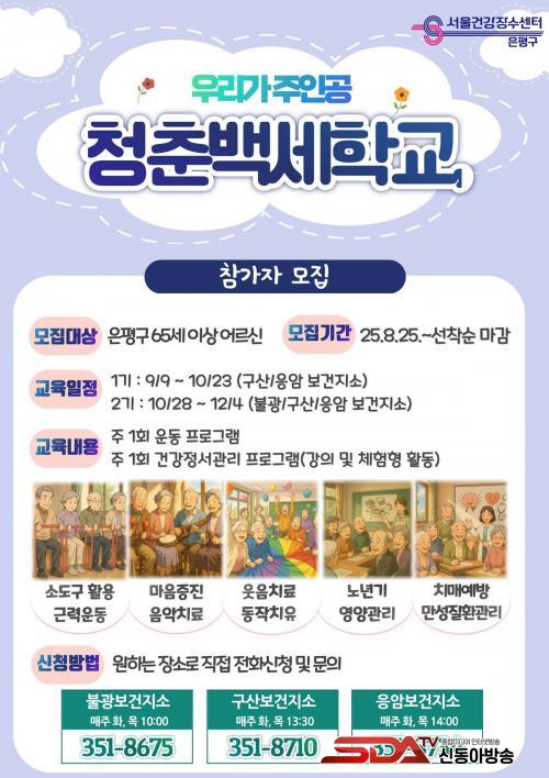 [½Åµ¿¾Æ¹æ¼Û ÀºÆò±¸=À̽ŵ¿±âÀÚ] ¼­¿ï ÀºÆò±¸´Â ¼­¿ï°Ç°­Àå¼ö¼¾ÅÍ¿¡¼­ Áö¿ª ¾î¸£½ÅµéÀÇ °Ç°­ÇÑ ³ëÈÄ¿Í È°±âÂù »çȸÂü¿©¸¦ À§ÇØ ³»´ÞºÎÅÍ ÇϹݱ⠡®Ã»Ãá¹é¼¼Çб³¡®¸¦ °³°­Çϰí Âü°¡ÀÚ¸¦ ¸ðÁýÇÑ´Ù°í ¹àÇû´Ù.