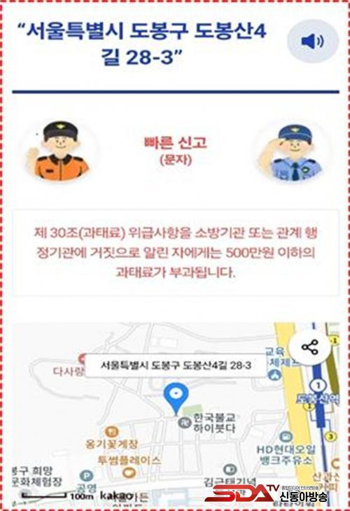¶Ç ±ä±Þ »óȲ ½Ã °æÂû¼­(112), ¼Ò¹æ¼­(119)·ÎÀÇ ºü¸¥ ¹®ÀÚ ½Å°íµµ Áö¿øÇϰí ÀÖ´Ù. ¿ÃÇØºÎÅʹ ť½Ì»ç±â ÇÇÇØ ¿¹¹æÀ» À§ÇÑ ¾È³»¿Í È«º¸µµ Çϰí ÀÖ´Ù.