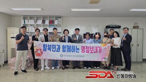 [½Åµ¿¾Æ¹æ¼Û Àü³²¼øÃµ=¹Ú±¤¿Á±âÀÚ] ¼øÃµ°æÂû¼­(¼­Àå ±è´ë¿ø)´Â 23ÀÏ ¾Èº¸ÀÚ¹®ÇùÀÇȸ(ȸÀå ³ë¾ç±â), ³²ºÏ±³·ù ¼øÃµ½Ã ÇùÀÇȸ(ȸÀå ¼±¼ø·Ê)¿Í ÇÔ²² ´Ù°¡¿À´Â Ãß¼®À» ¸Â¾Æ Å»ºÏ¹Îµé¿¡°Ô ¸íÀý¼±¹°À» Àü´ÞÇÏ¸ç °íÇâ¿¡ ´ëÇÑ Çâ¼ö¸¦ ´Þ·¨´Ù.