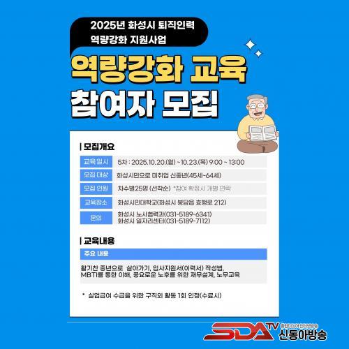 [½Åµ¿¾Æ¹æ¼Û=ÀÌÀçö±âÀÚ] È­¼ºÆ¯·Ê½Ã(½ÃÀå Á¤¸í±Ù)°¡ ÅðÁ÷ ÀηÂÀÇ »çȸ ÀçÁøÃâ°ú ³ëÈÄ Áغñ¸¦ µ½±â À§ÇÑ ¡®¿ª·®°­È­ ±³À°¡¯ 5±â Âü¿©ÀÚ¸¦ ¸ðÁýÇÑ´Ù°í 24ÀÏ ¹àÇû´Ù.