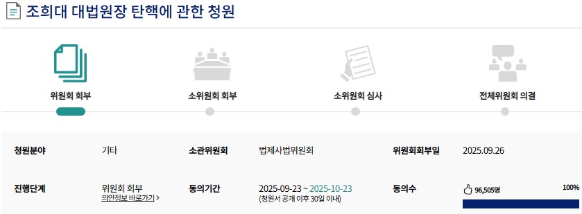 ÇÑÆí, ´ëÇѹα¹ Çå¹ý Á¦65Á¶ 1Ç× "¨ç´ëÅë·É¡¤±¹¹«ÃѸ®¡¤±¹¹«À§¿ø¡¤ÇàÁ¤°¢ºÎÀÇ À塤Çå¹ýÀçÆÇ¼Ò ÀçÆÇ°ü¡¤¹ý°ü¡¤Áß¾Ó¼±°Å°ü¸®À§¿øÈ¸ À§¿ø¡¤°¨»ç¿øÀ塤°¨»çÀ§¿ø ±âŸ ¹ý·üÀÌ Á¤ÇÑ °ø¹«¿øÀÌ ±× Á÷¹«ÁýÇà¿¡ À־ Çå¹ýÀ̳ª ¹ý·üÀ» À§¹èÇÑ ¶§¿¡´Â ±¹È¸´Â źÇÙÀÇ ¼ÒÃ߸¦ ÀǰáÇÒ ¼ö ÀÖ´Ù."¿¡ ±Ù°ÅÇØ¼­ ¿Ã¶ó¿Â Á¶Èñ´ë źÇ٠û¿øÀÌ ¿À´Ã ¿ÀÀü 10½Ã ÇöÀç 9¸¸6õ¸íÀ» µ¹ÆÄ, 10¸¸À» ´« ¾Õ¿¡ µÎ°í ÀÖ¾î, ±¹È¸´Â ¾î¶² ½ÄÀ¸·Î µç ´äÀ» ÇØ¾ß ÇÒ °ÍÀ¸·Î º¸ÀδÙ.