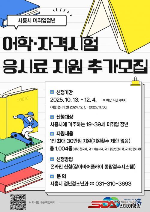 À̹ø Áö¿ø ´ë»ó ½ÃÇèÀº ¾îÇнÃÇè 19Á¾, Çѱ¹»ç, ±¹°¡±â¼úÀÚ°Ý 540Á¾, ±¹°¡°øÀιΰ£ÀÚ°Ý 97Á¾, ±¹°¡Àü¹®ÀÚ°Ý 347Á¾ µî ÃÑ 1,004Á¾À¸·Î, Áö³ ¿¬µµ Áö¿ø ¿©ºÎ³ª Ƚ¼ö, ȸ´ç Áö¿ø±Ý¾× Á¦ÇÑ ¾øÀÌ 1Àδç ÃÖ´ë 30¸¸ ¿ø±îÁö Áö¿ø¹ÞÀ» ¼ö ÀÖ´Ù. Áö¿ø±ÝÀº º»ÀÎ ¸íÀÇ °èÁ·ΠÁö±ÞµÈ´Ù.