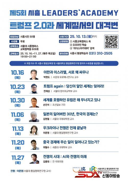 ¾ÆÄ«µ¥¹Ì´Â 10¿ù 16ÀϺÎÅÍ 11¿ù 27ÀϱîÁö ÃÑ 7ȸ¿¡ °ÉÃÄ ¼¿ï´ë ½ÃÈïÄ·ÆÛ½º ±³À°Çù·Âµ¿¿¡¼ ÁøÇàµÈ´Ù. ÃÑ 7°³ÀÇ °Á Áß 5°³ °ÁÂ(70%) ÀÌ»óÀ» ¼ö°ÇÏ¸é ½ÃÈï½Ã¿Í ¼¿ï´ëÇб³ ÅëÀÏÆòÈ¿¬±¸¿ø ¸íÀÇÀÇ ¼ö·áÁõÀÌ ¹ß±ÞµÈ´Ù.