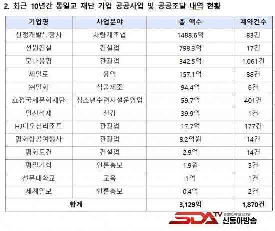 [½Åµ¿¾Æ¹æ¼Û ÀÎõ=À±¹Î½Ä±âÀÚ]±¹È¸ ±âȹÀçÁ¤À§¿øÈ¸ Á¤ÀÏ¿µ ÀÇ¿ø(´õºÒ¾î¹ÎÁִ硤ÀÎõ ¿¬¼öÀ»)ÀÌ Á¶´ÞûÀ¸·ÎºÎÅÍ Á¦Ãâ¹ÞÀº ÀڷḦ ºÐ¼®ÇÑ °á°ú, ÅëÀϱ³ µî ¹®Á¦ÀÇ Á¾±³ °ü·Ã Àç´Ü 17°³ ±â¾÷ÀÌ ÃÖ±Ù 10³â°£(2015~2025³â) ÃÑ 1,916°Ç, 3,129¾ï ¿ø ±Ô¸ðÀÇ °ø°øÁ¶´Þ °è¾àÀ» ü°áÇÑ °ÍÀ¸·Î È®ÀεƴÙ.