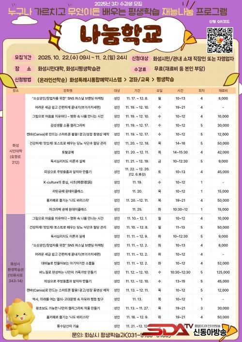 ³ª´®Çб³´Â ÀڽŸ¸ÀÇ Áö½Ä, Àç´É, ±â¼úÀ» ŸÀΰú °øÀ¯ÇÏ°í ¹è¿ï ¼ö ÀÖ´Â Àç´É³ª´® ÇÁ·Î±×·¥À¸·Î, À̹ø 3Â÷ ¸ðÁý¿¡´Â Àι®±³¾ç¡¤¹®È¿¹¼ú ºÐ¾ßÀÇ 26°³ ±³À°°úÁ¤ÀÌ °³¼³µÈ´Ù.