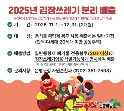 [½Åµ¿¾Æ¹æ¼Û ÀºÆò±¸=À̽ŵ¿±âÀÚ] ¼­¿ï ÀºÆò±¸´Â ±èÀåöÀ» ¸Â¾Æ 11¿ù 1ÀϺÎÅÍ 12¿ù 31ÀϱîÁö °ü³» ÀϹݰ¡Á¤¿¡¼­ ¹èÃâµÇ´Â ±èÀå¾²·¹±â¸¦ 20L ÀÌ»ó ÀÏ¹Ý Á¾·®Á¦ Æó±â¹° ºÀÅõ¿¡ ´ã¾Æ ¹èÃâÇÒ ¼ö ÀÖµµ·Ï Çã¿ëÇÑ´Ù°í ¹àÇû´Ù.