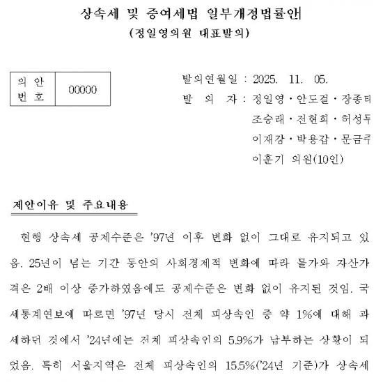 Á¤ÀÏ¿µ ÀÇ¿øÀº ¡°»ó¼Ó¼¼ ºÎ´ãÀ¸·Î °¡Á·ÀÌ ÇÔ²² »ì´ø ÁýÀ» ÀÒ´Â ÀÏÀº ¾ø¾î¾ß ÇÑ´Ù¡±¸ç,¡°Æ¯È÷ ¹è¿ìÀÚÀÇ Àç»ê Çü¼º ±â¿©µµ¸¦ ÃæºÐÈ÷ ÀÎÁ¤ÇØ Àϰý°øÁ¦ ±Ý¾×À» 5¾ï ¿ø¿¡¼ 7¾ï ¿øÀ¸·Î, ¹è¿ìÀÚ°øÁ¦ ÃÖÀú±Ý¾×À» 5¾ï ¿ø¿¡¼ 10¾ï ¿øÀ¸·Î »óÇâÇÔÀ¸·Î½á Áß»êÃþÀÇ »ó¼Ó¼¼ ºÎ´ãÀ» ¿ÏÈÇÏ°í °¡Á·ÀÇ ÁְžÈÁ¤À» º¸ÀåÇϰíÀÚ ÇÑ´Ù¡±°í ÀüÇß´Ù.