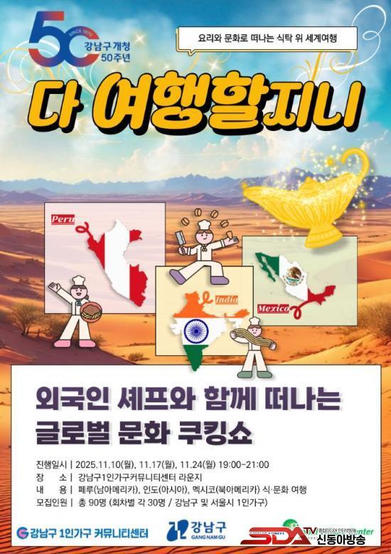 [½Åµ¿¾Æ¹æ¼Û °­³²±¸=À̽ŵ¿±âÀÚ] ²ÞÀÌ ¸ðÀÌ´Â µµ½Ã, ¹Ì·¡¸¦ ±×¸®´Â °­³²±¸°¡ 1Àΰ¡±¸¸¦ À§ÇÑ ±Û·Î¹ú ÄíÅ· ¹®È­¼î ¡®´Ù ¿©ÇàÇÒÁö´Ï¡¯¸¦ 11¿ù 10ÀϺÎÅÍ 24ÀϱîÁö ¸ÅÁÖ ¿ù¿äÀÏ Àú³á 7½ÃºÎÅÍ 9½Ã±îÁö ÃÑ 3ȸ¿¡ °ÉÃÄ °­³²±¸ 1Àΰ¡±¸ Ä¿¹Â´ÏƼ¼¾ÅÍ ¶ó¿îÁö¿¡¼­ °³ÃÖÇÑ´Ù.