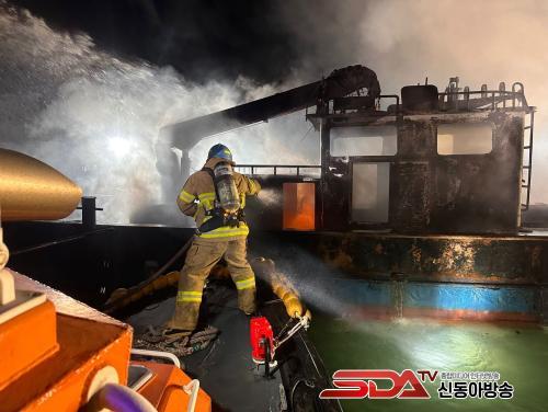 Áö³­ 8¿ù 16ÀÏ »õº®, ¿©¼ö AÁ¤¹ÚÁö¿¡¼­ ¼®À¯Á¦Ç°¿î¹Ý¼±(2,692Åæ)°ú ¿ë´Þ¼±(24Åæ)¿¡ È­Àç°¡ ¹ß»ýÇÏÀÚ, °æºñ±¸Á¶°ú À¯º´¿í °æÀåÀÌ Æø¹ß À§ÇèÀ» ¹«¸¨¾²°í ¼±¿ø 18¸íÀ» Àü¿ø ±¸Á¶Çß´Ù.