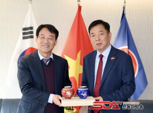 °­Áø±ºÀÌ Áö³­ 6ÀÏ ÁÖÇѺ£Æ®³²´ë»ç°üÀ» ¹æ¹®ÇØ ºÎÈ£(Vu Ho) ÁÖÇѺ£Æ®³²´ë»ç¿Í ¸é´ãÀ» °®°í, ¾ç Áö¿ª °£ÀÇ ¿ìÈ£Çù·Â ÁõÁø°ú ½ÇÁúÀû ±³·ù È®´ë¸¦ À§ÇÑ ¹æ¾ÈÀ» ³íÀÇÇß´Ù.