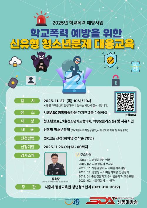 ±³À°Àº ½ÃÈï°æÂû¼­ ¼Ò¼Ó »çÀ̹ö¹üÁË ¿¹¹æ Àü¹® °­»ç ±è¿íÁß °æÀ§°¡ ¹®Á¦ À¯Çüº° ÁÖ¿ä »ç·Ê Áß½ÉÀ¸·Î ÁøÇàÇÑ´Ù. ÁÖ¿ä ³»¿ëÀº ¡ã»çÀ̹öµµ¹Ú ¡ãµðÁöÅÐ ¼º¹üÁË ¡ã½º¸¶Æ®Æù Áßµ¶ ¡ã¾à¹°(¸¶¾à) Áßµ¶ µî »õ·Ó°Ô ´ëµÎµÇ´Â û¼Ò³â ¹®Á¦ÀÇ À§Ç輺°ú ÀÌ¿¡ ´ëÇÑ ¿¹¹æ ¹× ´ëÀÀ ¹æ¾ÈÀÌ´Ù.
