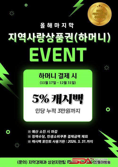 [½Åµ¿¾Æ¹æ¼Û Çϳ²½Ã=À̽ŵ¿±âÀÚ] Çϳ²½Ã´Â ¿¬¸» ¼Òºñ Ȱ¼ºÈ­¸¦ À§ÇØ ¿À´Â 11¿ù 17ÀϺÎÅÍ 12¿ù 31ÀϱîÁö Áö¿ª»ç¶û»óǰ±Ç ¡®ÇϸӴϡ¯ °áÁ¦ ±Ý¾×ÀÇ 5%¸¦ ij½Ã¹é ÇüÅ·Πȯ±ÞÇÏ´Â À̺¥Æ®¸¦ ÁøÇàÇÑ´Ù.