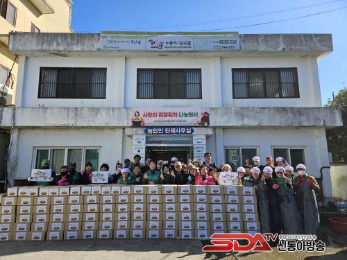 ȸ¿øµéÀº »çÈê µ¿¾È ¹èÃß 1500Æ÷±â¸¦ ¼ÕÁúÇÏ°í °¢Á¾ ä¼Ò·Î ¾ç³äÀ» ÁغñÇØ 12§¸ ºÐ·®ÀÇ ±èÀå±èÄ¡ 150»óÀÚ¸¦ ¸¸µé¾ú´Ù. ¿Ï¼ºµÈ ±èÄ¡´Â ±èÀåÇϱ⠾î·Á¿î Àú¼Òµæ Ȧ¸ö³ëÀΰú ûÀå³â 1ÀÎ °¡±¸, Àå¾ÖÀÎ °¡±¸, º¹Áö½Ã¼³ µî¿¡ Á÷Á¢ Àü´ÞÇßÀ¸¸ç Àü´Þ °úÁ¤¿¡¼­ ¾ÈºÎµµ ÇÔ²² »ìÆñ´Ù.