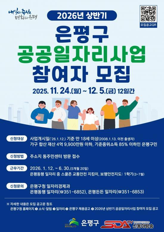 [½Åµ¿¾Æ¹æ¼Û ÀºÆò±¸=À̽ŵ¿±âÀÚ] ¼­¿ï ÀºÆò±¸´Â °æÁ¦Àû ¾î·Á¿òÀ» °Þ´Â Àú¼Òµæ Ãë¾÷ Ãë¾à°èÃþ°ú ½ÇÁ÷ÀÚ µîÀÇ ÀÚ¸³À» Áö¿øÇϱâ À§ÇØ ¡®2026³â »ó¹Ý±â °ø°øÀÏÀÚ¸®»ç¾÷¡¯ Âü¿©ÀÚ¸¦ ¸ðÁýÇÑ´Ù°í ¹àÇû´Ù.