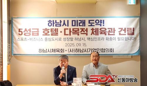 Áö³­ 9¿ù 15ÀÏ ¿­¸° ±âÀÚȸ°ß¿¡¼­ ±è½ÂÇö Çϳ²½Ã ±â¾÷ÀÎÇùÀÇȸÀå(¿À¸¥ÂÊ)°ú ÃÖÁø¿ë Çϳ²½ÃüÀ°È¸Àå(¿ÞÂÊ)ÀÌ ¡®5¼º±Þ È£ÅÚ‧´Ù¸ñÀû üÀ°°ü °Ç¸³¡¯¿¡ ´ëÇØ ¼³¸íÇϰí ÀÖ´Ù.