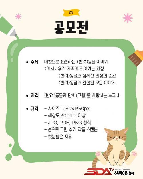 À̹ø °ø¸ðÀüÀº µ¿¹°°ú ¸¸È­(±×¸²)¿¡ °ü½É ÀÖ´Â ´©±¸³ª Âü¿©ÇÒ ¼ö ÀÖÀ¸¸ç, ¹Ý·Áµ¿¹°°ú Àϻ󿡼­ °Þ´Â Àç¹ÌÀÖ°í µûµíÇÑ ¼ø°£À» ³×ÄÆ¸¸È­·Î Ç¥ÇöÇÏ¸é µÈ´Ù. Á¢¼ö±â°£Àº ¿À´Â 10ÀϺÎÅÍ 15ÀϱîÁöÀ̸ç, ÀüÀÚ¿ìÆí(pricdesign@naver.com)À¸·Î Á¢¼öÇÑ´Ù.