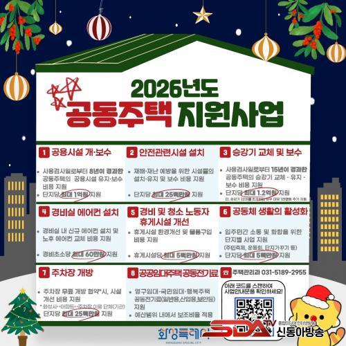 2026³â °øµ¿ÁÖÅà Áö¿ø»ç¾÷À¸·Î´Â À̹ø¿¡ ¸ðÁýÇÏ´Â ½Â°±â ±³Ã¼ ¹× º¸¼ö Áö¿ø»ç¾÷ ¿Ü¿¡ °ø¿ë½Ã¼³ °³º¸¼ö Áö¿ø, °øµ¿ÁÖÅà ±Ù·ÎÀÚ È¯°æ°³¼± Áö¿ø µîÀÌ ÃßÁøµÇ¸ç, 2026³â 1¿ù Áß ºÐ¾ßº° ¼¼ºÎ Áö¿ø ¿ä°Ç°ú ½Åû ÀýÂ÷°¡ ¸ðÁý ½Ã±âº°·Î º°µµ °ø°íµÉ ¿¹Á¤ÀÌ´Ù.