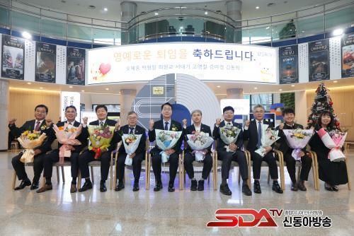 À̹ø ÅðÀÓ½ÄÀº ¿ÀÁ¦È« ȯ°æ±¹Àå, ¹ÚÇüÀÏ µ¿ºÎÃâÀå¼ÒÀå, ÃÖ¿ø±³ °¨»ç°üÀ» ºñ·ÔÇÑ 9¸íÀÇ ÅðÁ÷ÀÚ ¹× °¡Á·°ú µ¿·á, ¼±ÈÄ¹è °øÁ÷ÀÚµéÀÌ ÇÔ²²ÇÑ °¡¿îµ¥ ¡ãÀλç¹ß·ÉÅëÁö¼ ±³ºÎ ¹× °ø·ÎÆÐ ¼ö¿© ¡ã±â³ä¿µ»ó ¹× ÃàÇϰø¿¬ ¡ãÅðÀÓ»ç µîÀ¸·Î ÁøÇàµÇ¾úÀ¸¸ç, Âü¼®ÀÚµéÀº µû¶æÇÑ ºÐÀ§±â ¼Ó¿¡¼ ÅðÁ÷ÀÚµéÀÇ ³ë°í¸¦ µÇ»õ°å´Ù.