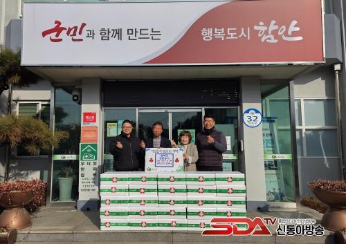[½Åµ¿¾Æ¹æ¼Û °æ³²ÇÔ¾È=À̽ŵ¿±âÀÚ] ÇԾȱº Ä¥ºÏ¸éÀº Áö³­ 29ÀÏ Áö¿ª ³» ¾çµ·¾÷ü 3°÷(µ¿¹æ³óÀå Â÷»ó½Ä ´ëÇ¥, È­Áø³óÀå ±è¸¸·¡ ´ëÇ¥, ÇÁ·ÎÆÊ ³ëÇö¼® ´ëÇ¥)ÀÌ ¿¬¸»À» ¸Â¾Æ µÅÁö°í±â 200kgÀ» °ü³» °æ·Î´ç 24°÷¿¡ ±âŹÇϸç Áö¿ª ¾î¸£½Åµé¿¡ ¿ÂÁ¤¸¦ ÀüÇß´Ù°í ¹àÇû´Ù.