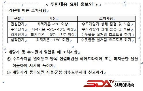 À̹ø ´ëÃ¥Àº °Ü¿ï ÇÑÆÄ·Î ÀÎÇÑ ¼öµµ°è·®±â ÆÄ¼Õ°ú ±Þ¼ö°ü µ¿°á µî »ýȰ ºÒÆíÀ» ¿¹¹æÇϱâ À§ÇÑ °ÍÀ¸·Î, »ó¼öµµ ½Ã¼³ »çÀüÁ¡°Ë°ú º¸¿Â Á¶Ä¡, µ¿ÆÄ ¹æÁö¿ë °è·®±â È®º¸, ¹Î¿ø Á¢¼ö Áï½Ã Ã⵿ÀÌ °¡´ÉÇÑ ºñ»ó ´ëÀÀü°è¸¦ Áö¼Ó ¿î¿µÇϰí ÀÖ´Ù.