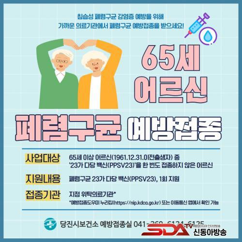 [½Åµ¿¾Æ¹æ¼Û=ÀÌÀçö±âÀÚ] ´çÁø½Ã´Â °ü³» 65¼¼ ÀÌ»ó(1961.12.31. ÀÌÀü Ãâ»ýÀÚ) Áß 23°¡ ´Ù´çÁú Æó·Å±¸±Õ ¹é½Å(PPSV23)À» ÇÑ ¹øµµ Á¢Á¾ÇÏÁö ¾ÊÀº ¾î¸£½ÅÀ» ´ë»óÀ¸·Î Æó·Å±¸±Õ ¹«·á ¿¹¹æÁ¢Á¾À» ½Ç½ÃÇÑ´Ù°í 15ÀÏ ¹àÇû´Ù.