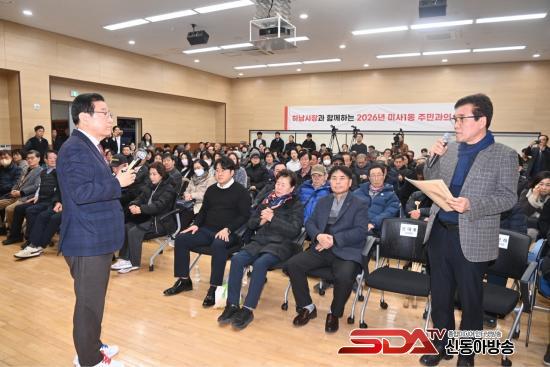 29ÀÏ ¿ÀÈÄ ¹Ì»ç1µ¿ ÇàÁ¤º¹Áö¼¾ÅÍ¿¡¼­ °³ÃÖµÈ ¡®2026 ¹Ì»ç1µ¿ ÁֹΰúÀÇ ´ëÈ­¡¯¿¡¼­ ÀÌÇöÀç Çϳ²½ÃÀåÀÌ ¹Ì»ç Áö¿ªÀ» Áß½ÉÀ¸·Î ÇÑ µµ½Ã °æÀï·Â °­È­ ±¸»óÀ» Á÷Á¢ ¼³¸íÇϰí ÀÖ´Ù.