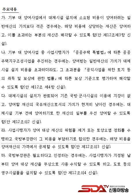 ´õºÒ¾î¹ÎÁÖ´ç ¹Ú¼±¿ø ±¹È¸ÀÇ¿ø(ÀÎõ ºÎÆò±¸À»/±¹¹æÀ§¿øÈ¸)Àº ±º»ç½Ã¼³ ÀÌÀü »ç¾÷À» º¸´Ù ºü¸£°í Çö½ÇÀûÀ¸·Î ÃßÁøÇϱâ À§ÇÑ ¡¸±¹¹æ¡¤±º»ç½Ã¼³ »ç¾÷¿¡ °üÇÑ ¹ý·ü ÀϺΰ³Á¤¹ý·ü¾È¡¹°ú ¡¸±¹À¯Àç»êƯ·ÊÁ¦Çѹý ÀϺΰ³Á¤¹ý·ü¾È¡¹À» ´ëÇ¥¹ßÀÇÇß´Ù.