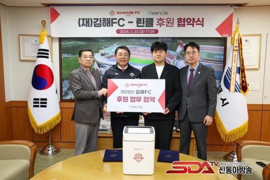 [½Åµ¿¾Æ¹æ¼Û °æ³²±èÇØ=³²±Ã¿µ±â±âÀÚ] Àç´Ü¹ýÀÎ ±èÇØFC(ÀÌÇÏ ¡®±èÇØFC¡¯)°¡ Áö¿ª ³» Çõ½Å ±â¾÷°úÀÇ ÆÄÆ®³Ê½ÊÀ» ÅëÇØ ±¸´Ü °æÀï·Â °­È­¿Í Áö¿ª »ó»ýÀ̶ó´Â µÎ ¸¶¸® Åä³¢ Àâ±â¿¡ ³ª¼¹´Ù. ±èÇØFC´Â 20ÀÏ, °¡Á¤¿ë À½½Ä¹°Ã³¸®±â Àü¹® ºê·£µåÀÎ ¡®¸°Å¬(Reencle)¡¯°ú °ø½Ä ÈÄ¿ø Çù¾àÀ» ü°áÇß´Ù°í ¹àÇû´Ù. À̹ø Çù¾àÀº ±èÇØFCÀÇ ÁßÀå±â ¹ßÀü 5´ë Àü·« Áß ÇϳªÀÎ ºê·£µå Çù·Â ÇÁ·ÎÁ§Æ®ÀÇ ÇÙ½É »ç¾÷, ¡®¾ÆÀ̾ð À¯´ÏƼ ³×Æ®¿öÅ©(Iron Unity Network)¡¯ ±¸ÃàÀÇ ÀÏȯÀ¸·Î ¼º»çµÇ¾ú´Ù.