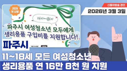 ÆÄÁֽð¡ ¿©¼ºÃ»¼Ò³âÀÇ °Ç°­ÇÑ ¼ºÀå°ú º¹Áö ÁõÁøÀ» À§ÇØ ¡®2026³âµµ ¿©¼ºÃ»¼Ò³â »ý¸®¿ëǰ º¸Æí Áö¿ø »ç¾÷¡¯À» º»°Ý ½ÃÇàÇÑ´Ù. À̹ø »ç¾÷Àº ÆÄÁֽÿ¡ °ÅÁÖÇÏ´Â ¸¸ 11¼¼ºÎÅÍ 18¼¼ »çÀÌÀÇ ¿©¼ºÃ»¼Ò³â Àüü¸¦ ´ë»óÀ¸·Î Çϸç, ¿¬°£ ÃÖ´ë 16¸¸ 8,000¿øÀÇ Áö¿ø±ÝÀ» Áö±ÞÇÏ´Â °ÍÀÌ ÇÙ½ÉÀÌ´Ù.