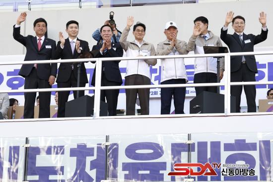 »çÁø=À±¼ºÁø È­¼ºÆ¯·Ê½ÃÀå ±ÇÇÑ´ëÇàÀÌ ¡®Á¦72ȸ °æ±âµµÃ¼À°´ëȸ¡¯ °³È¸½Ä¿¡¼­ ³»ºóµé°ú ÇÔ²² ¼ÕÀ» µé¾î ÀλçÇϰí ÀÖ´Ù