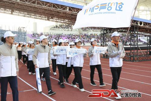 »çÁø=¸í> <È­¼º1-1> È­¼ºÆ¯·Ê½Ã ¼±¼ö´ÜÀÌ ¡®Á¦72ȸ °æ±âµµÃ¼À°´ëȸ¡¯ °³È¸½Ä¿¡¼­ ½Ã±â¸¦ ¾Õ¼¼¿ì°í ÀÔÀå ÇàÁøÀ» Çϰí ÀÖ´Ù