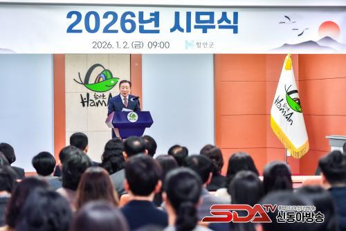[½Åµ¿¾Æ¹æ¼Û °æ³²ÇÔ¾È=À̽ŵ¿±âÀÚ] ÇԾȱºÀº Áö³­ 2ÀÏ ¿ÀÀü 9½Ã ±ºÃ» 3Ãþ ´ëȸÀǽǿ¡¼­ °øÁ÷ÀÚ 200¿© ¸íÀÌ Âü¼®ÇÑ °¡¿îµ¥ ½Ã¹«½ÄÀ» ¿­°í º´¿À³â »õÇØ ¾÷¹«¸¦ ½ÃÀÛÇß´Ù°í ¹àÇû´Ù.