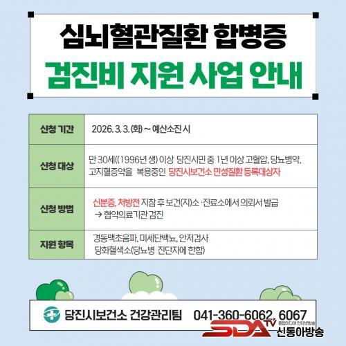 À̹ø »ç¾÷Àº ¿À´Â 3¿ù 3ÀϺÎÅÍ ¿¹»ê ¼ÒÁø ½Ã±îÁö ÁøÇàÇϸç, Áö¿ø ´ë»óÀº ¸¸ 30¼¼(1996³â Ãâ»ý) ÀÌ»ó ´çÁø½Ã¹Î Áß 1³â ÀÌ»ó °íÇ÷¾Ð‧´ç´¢º´‧°íÁöÇ÷Áõ Ä¡·áÁ¦¸¦ º¹¿ë ÁßÀÎ ´çÁø½Ãº¸°Ç¼Ò ¸¸¼ºÁúȯ µî·ÏÀÚÀÌ´Ù.