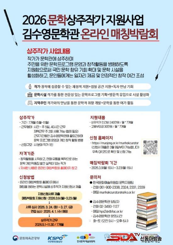 2026 ¹®ÇлóÁÖÀÛ°¡ Áö¿ø»ç¾÷Àº ÀÛ°¡°¡ ¹®Çаü¿¡ »óÁÖÇϸç ÁÖ¹ÎÀ» À§ÇÑ ¹®ÇÐÇÁ·Î±×·¥ ¿î¿µ°ú âÀÛ È°µ¿À» º´ÇàÇϵµ·Ï Áö¿øÇÏ´Â »ç¾÷ÀÌ´Ù.