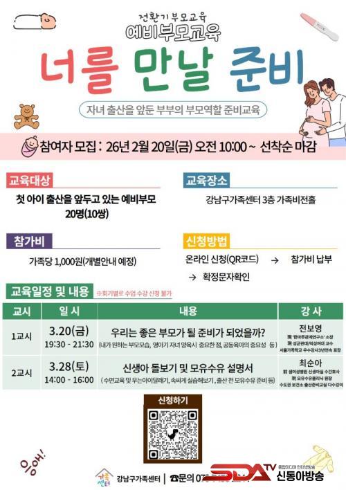 ±³À°Àº µÎ Â÷·Ê¿¡ °ÉÃÄ ÁøÇàµÈ´Ù. 1Â÷ ±³À°Àº 3¿ù 20ÀÏ ¿ÀÈÄ 7½Ã 30ºÐºÎÅÍ 9½Ã 30ºÐ±îÁö´Â ºÎ¸ð·Î¼ÀÇ ¸¶À½°¡Áü°ú °øµ¿À°¾ÆÀÇ Á߿伺À» ÇÔ²² ³ª´©´Â ¼ÒÅë Á᫐ °ÀÇ·Î ¿î¿µµÈ´Ù. 2Â÷ ±³À°Àº 3¿ù 28ÀÏ ¿ÀÈÄ 2½ÃºÎÅÍ 4½Ã±îÁö´Â ½Å»ý¾Æ µ¹º½°ú ¸ðÀ¯¼öÀ¯ µî Ãâ»ê ÀÌÈÄ Àϻ󿡼 ¹Ù·Î Ȱ¿ëÇÒ ¼ö ÀÖ´Â ½ÇÁúÀûÀÎ ¾çÀ° ³ëÇϿ츦 Àü´ÞÇÒ ¿¹Á¤ÀÌ´Ù.