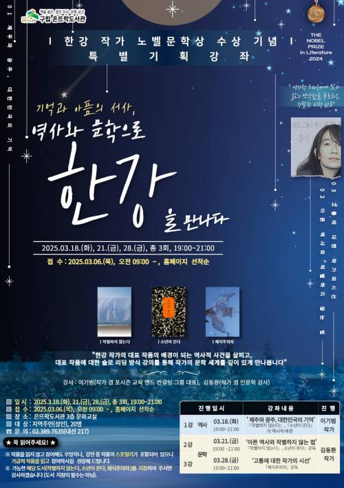 [½Åµ¿¾Æ¹æ¼Û ÀºÆò±¸=À̽ŵ¿±âÀÚ] ÀºÆò±¸´Â ±¸¸³ Àº¶ß¶ôµµ¼­°ü¿¡¼­ ÇѰ­ ÀÛ°¡ ³ëº§¹®Çлó ¼ö»ó±â³ä Ưº°±âȹ°­Á ¡®±â¾ï°ú ¾ÆÇÄÀÇ ¼­»ç, ¿ª»ç¿Í ¹®ÇÐÀ¸·Î ÇѰ­À» ¸¸³ª´Ù¡¯¸¦ ¿î¿µÇÑ´Ù°í ¹àÇû´Ù. À̹ø °­Á´ ÇѰ­ ÀÛ°¡ÀÇ ´ëÇ¥ÀÛ ¡¯ÀÛº°ÇÏÁö ¾Ê´Â´Ù¡®, ¡¯¼Ò³âÀÇ ¿Â´Ù¡®¡¦
