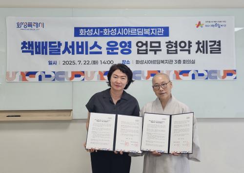 [½Åµ¿¾Æ¹æ¼Û=ÀÌÀçö±âÀÚ] È­¼ºÆ¯·Ê½Ã(½ÃÀå Á¤¸í±Ù)°¡ Áö³­ 22ÀÏ È­¼º½Ã¾Æ¸£µõº¹Áö°ü°ú ¡®Ã¥¹è´Þ¼­ºñ½º ¿î¿µÀ» À§ÇÑ ¾÷¹« Çù¾à¡¯À» ü°áÇß´Ù. ¡®Ã¥¹è´Þ¼­ºñ½º¡¯´Â ±âÁ¸ ¡®»óÈ£´ëÂ÷¼­ºñ½º¡¯ÀÇ È®´ë ¹æ¾ÈÀ¸·Î, °ø°øµµ¼­°üÀÇ µµ¼­¸¦ ÀÌ¿ëÀÚ°¡ ¹æ¹®ÇÏ±â ÆíÇÏ°í °¡±î¿î »ç¸³¡¦